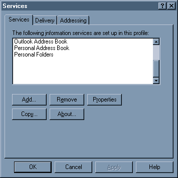 You are now finished setting up your new "service". Press the "Apply" button to apply the changes and press the "OK" button to save and close the window. You probably will get a message saying that the new service is not available until you log out and log back into Outlook. To do that close Outlook and restart it.