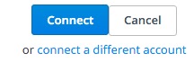 Dropbox will then choose your default Dropbox login. If it is the correct one, click Connect. If not, click the text connect a different account.