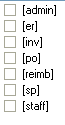 The application has multiple roles: [admin], [er] , [inv], [po], [reimb], [sp], and [staff].