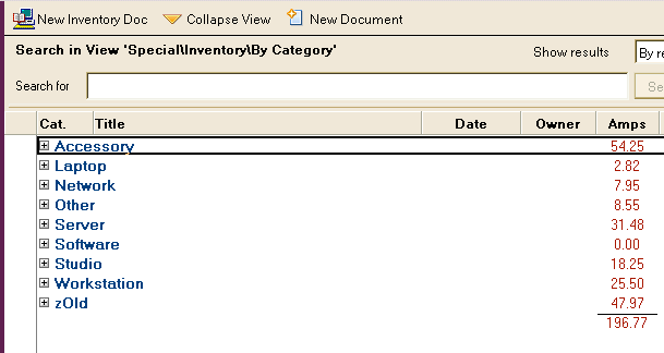 Inventory Documents allow you to simply inventory assets. Includes power consumption for either load calculations on back-up power or LEED type power calculations. Regular respository documents can also be converted one-way into an Inventory document, as well.