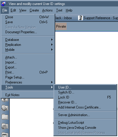 • The requesting user chooses "File" and then chooses "Tools" and then chooses "User ID..."
