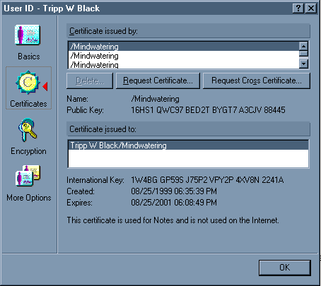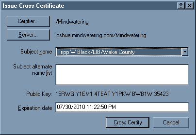 • In the cross certify screen, verify you are using the correct certifier ID, the server, and that you have the requesting user's name.
