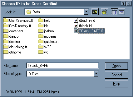 • In the file browsing dialog box, locate and select the ID to be cross certified and press the "Open" button.