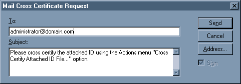 • In the "Mail Cross Certificate Request" dialog box, enter in the remote foreign administrator's email and press the "Send" button.