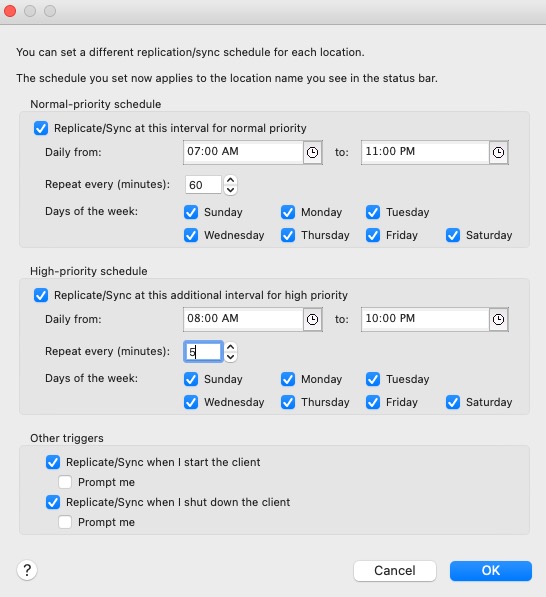 - a. Make sure normal and high Replication/Sync intervals are checked/enabled.