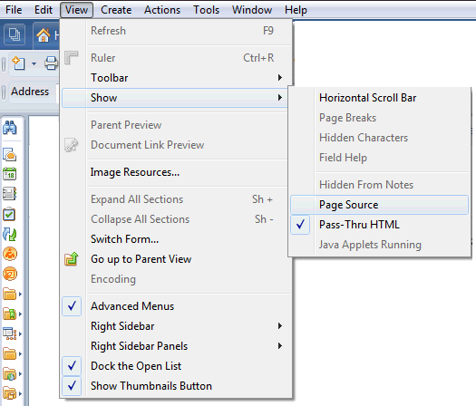 In Lotus Notes, to view a complete page source which includes the e-mail header,