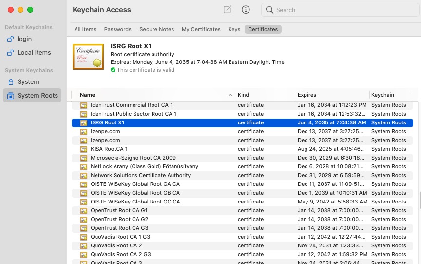 3. Drag the downloaded certificate file from the Downloads folder into the System Roots view.